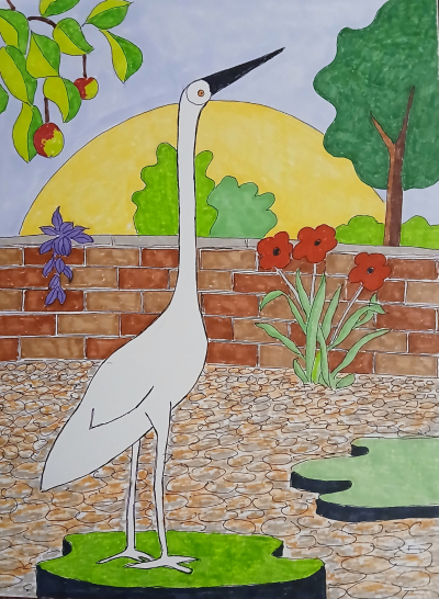 The inspiration for this subject was a visit to Kew Gardens and having a look at the traditional fauna paintings on display.